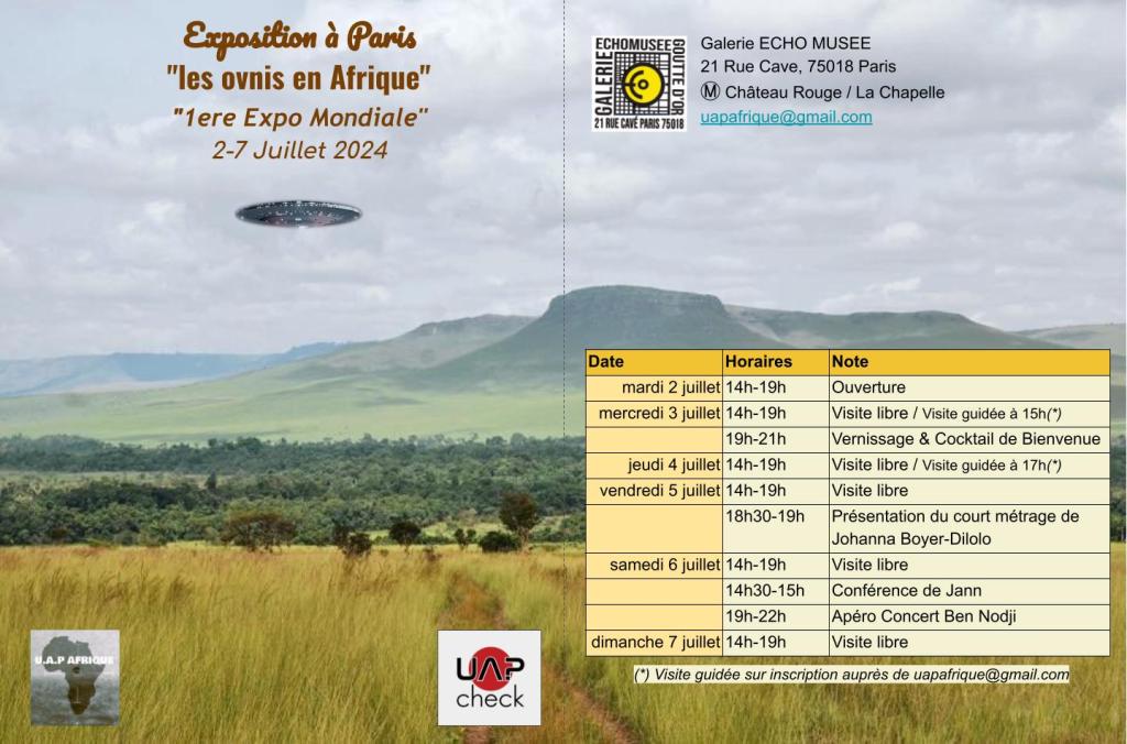 Exposition LES OVNIS EN AFRIQUE, du 2 au 7 juillet 2024, Galerie Echomusée, Paris 18